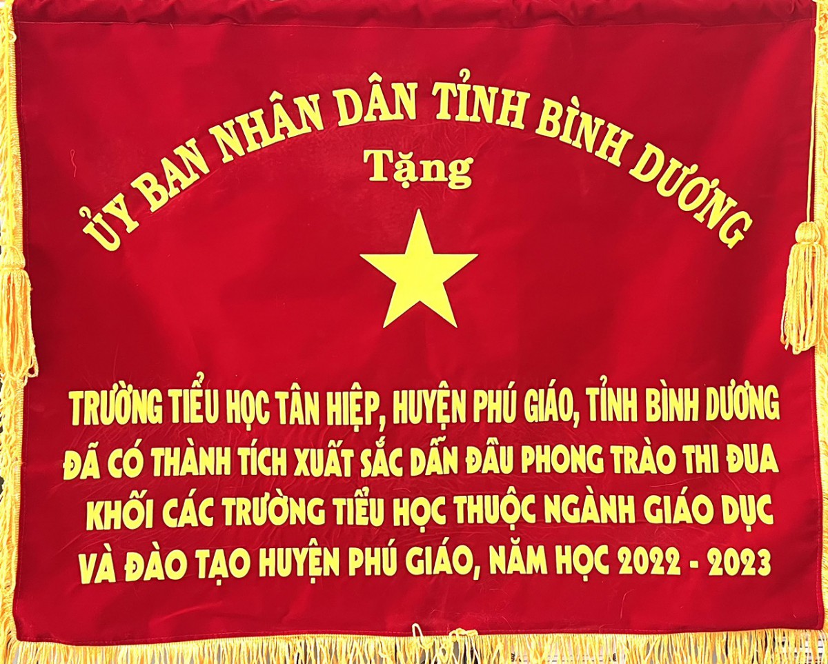 TRƯỜNG TIỂU HỌC TÂN HIỆP NHẬN CỜ THI ĐUA CỦA UBND TỈNH BÌNH DƯƠNG Ngày 20 tháng 11 năm 2023, trong buổi Lễ Kỉ niệm