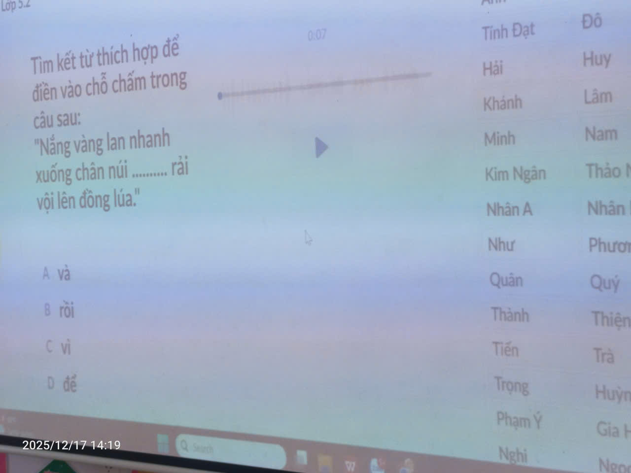 Thực hiện tiết dạy minh họa chuyên đề là cô giáo Lê Thị Nguyệt và các em học sinh lớp 52 với tiết Tiếng Việt bài Luyện từ và câu “Kết từ”. Các hoạt động trong tiết dạy đã ứng dụng trí tuệ nhân tạo:
