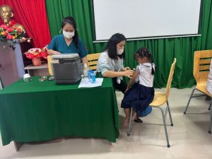 TRƯỜNG TIỂU HỌC TÂN HIỆP PHỐI HỢP VỚI TRẠM Y TẾ PHƯỚC THÀNH TỔ CHỨC TIÊM VẮC XIN BẠCH HẦU – UỐN VÁN (TD) CHO HỌC SINH